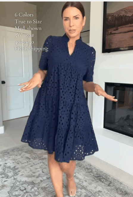 Eyelet Dress For Women Trendy Flowy Pleated Tiered Cotton Shift Dress